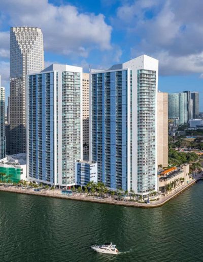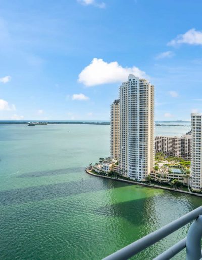 - Residences, party, and amenity decks offer spectacular and dramatic views of Biscayne Bay, Port of Miami, Brickell Avenue, Downtown Miami, South Beach, and Key Biscayne